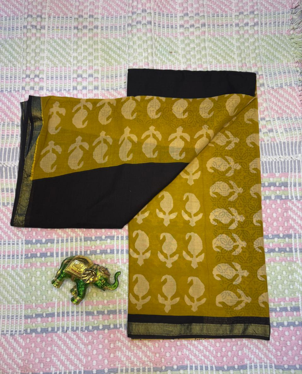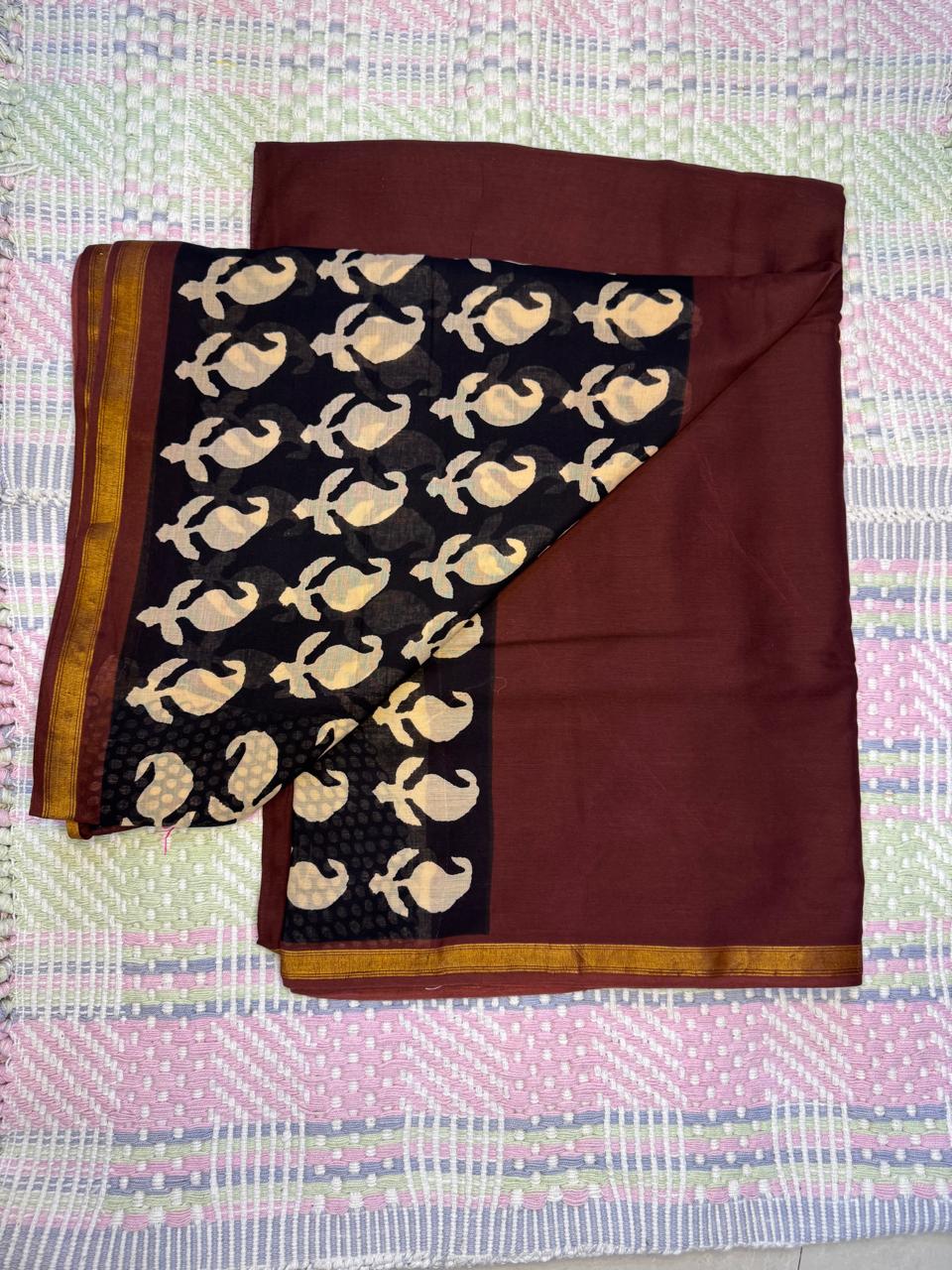Crafted from Chanderi cotton, this saree boasts a small zari border for an elegant touch. Its skin-friendly material and lightweight design make it an ideal choice for all-day wear. Experience comfort and style with this Chanderi Cotton saree.